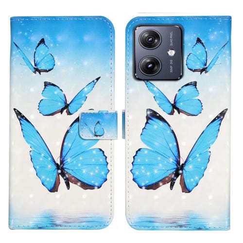 Funda de Cuero para Motorola Moto G14 4G con Dibujo 3D en Relieve al Óleo (3 Mariposas)