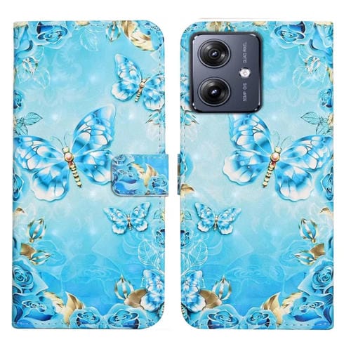 Funda de Cuero para Motorola Moto G14 4G con Dibujo 3D en Relieve al Óleo (Mariposas Azules)