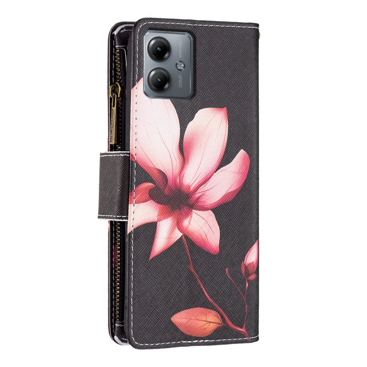 Funda de Cuero para Motorola Moto G14 4G con Cremallera y Patrón Dibujo Lotus