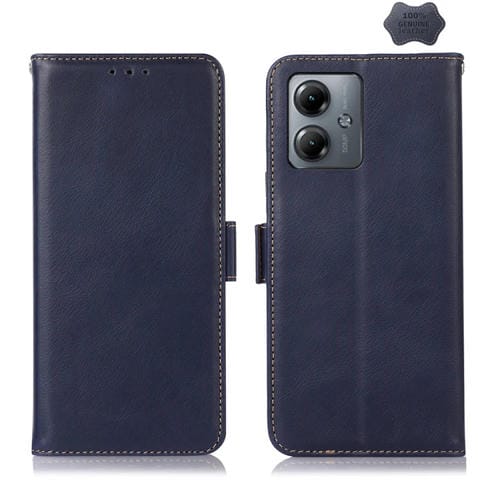 Funda Magnética para Motorola Moto G14 4G con Protección RFID Cuero Genuino (Azul)