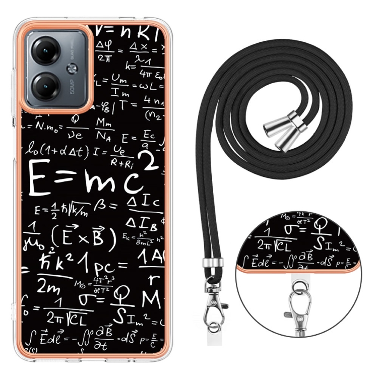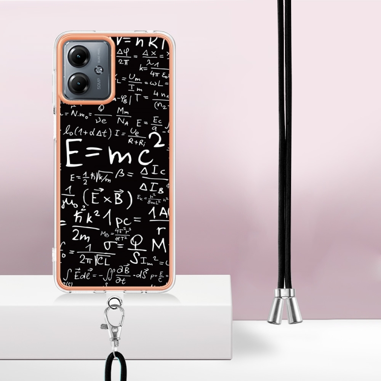 Estuche para Teléfono Motorola Moto G14 IMD Doble Cara con Galvanoplastia y Cordón (Ecuación)