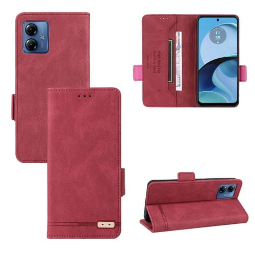 - 1x Funda de Cuero para Motorola Moto G14 con Cierre Magnético (Rojo)