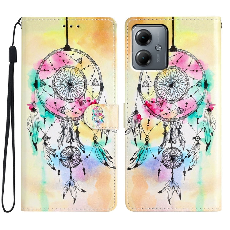 Funda de Cuero para Motorola Moto G14 con Dibujo Coloreado Atrapasueños