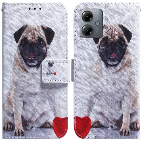 - 1x Funda de Cuero para Motorola Moto G14 con Tapa y Dibujo Coloreado (Pug)