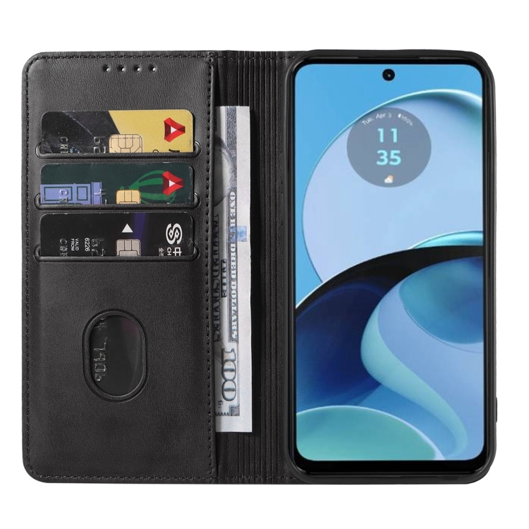 Funda de Cuero para Motorola Moto G14 con Cierre Magnético (Negro)