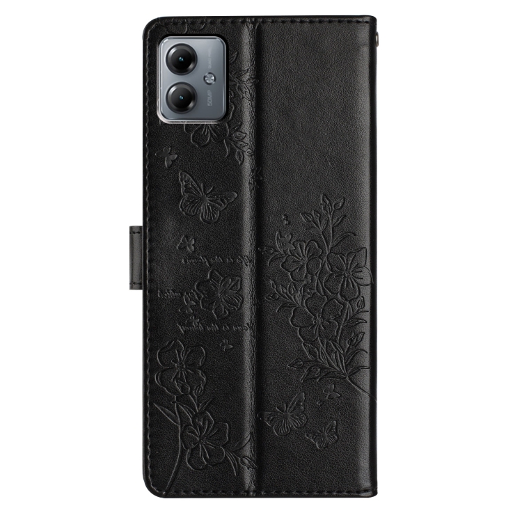 Funda de Cuero para Motorola Moto G14 con Mariposas y Flores (Negro)