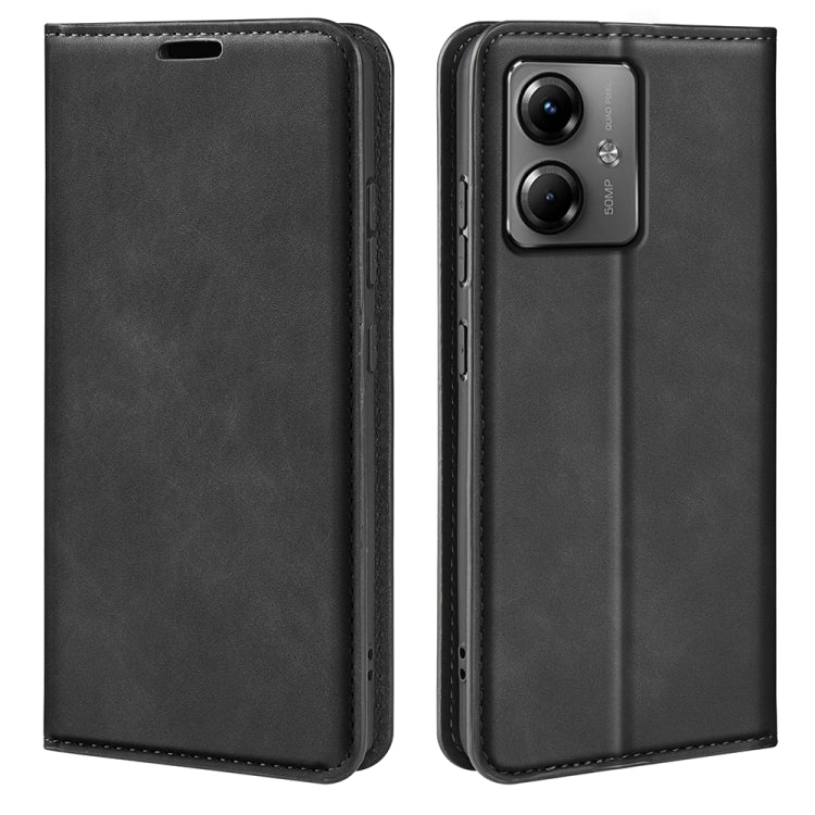 Funda de Cuero para Motorola Moto G14 con Succión Magnética de Piel Retro (Negro)