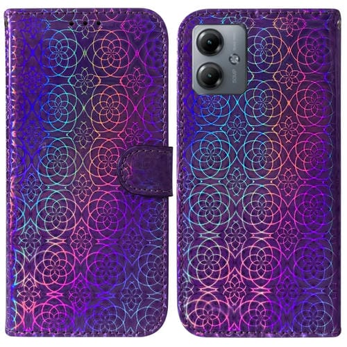Funda de Cuero para Motorola Moto G14 con Hebilla Magnética Colorida (Púrpura)