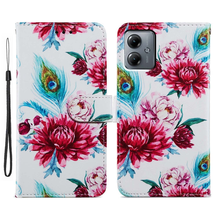Funda de Cuero para Motorola Moto G14 con Tapa Horizontal y Patrón Flor de Pavo Real