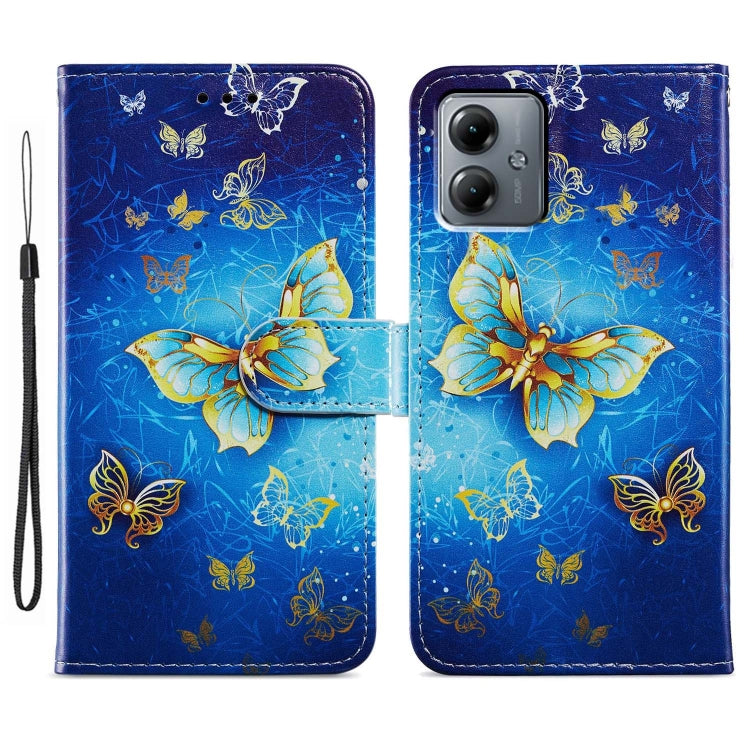 Funda de Cuero para Motorola Moto G14 con Tapa Horizontal y Patrón Mariposa