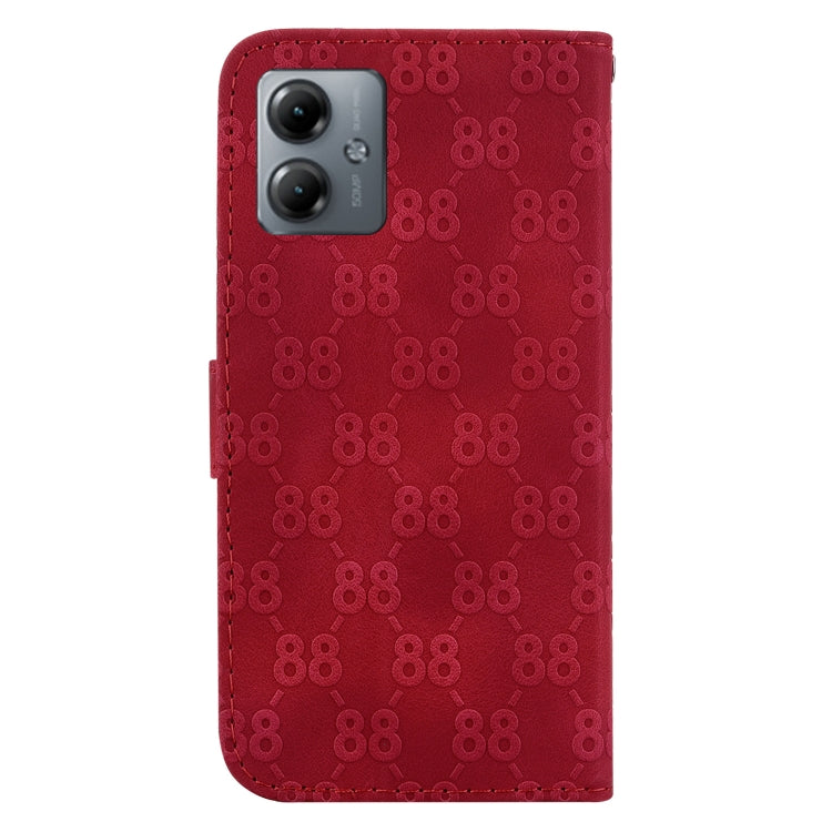 Funda para Motorola Moto G14 de Cuero con Relieve en Forma de 8 Doble (Rojo)