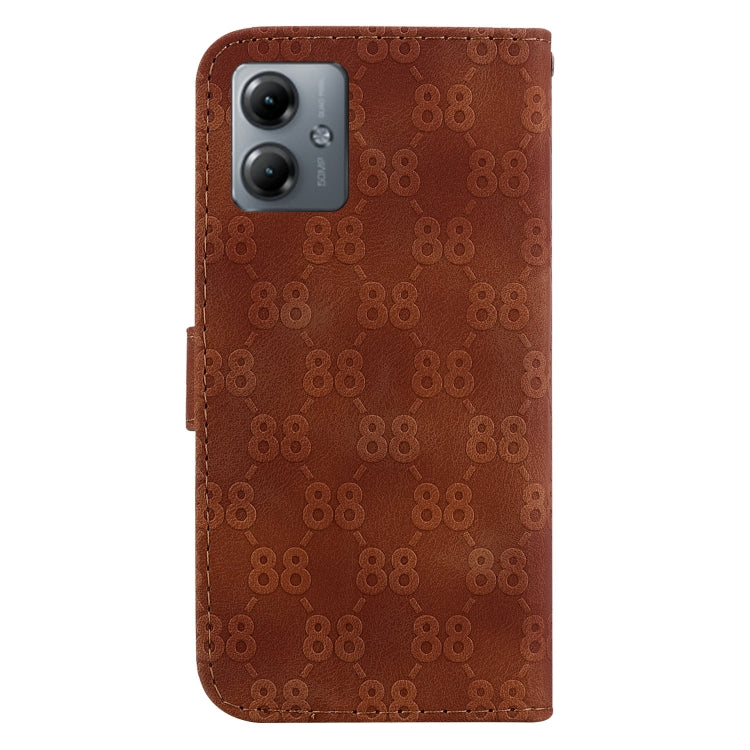 Funda para Motorola Moto G14 de Cuero En Relieve con Doble Forma de 8 (Marrón)