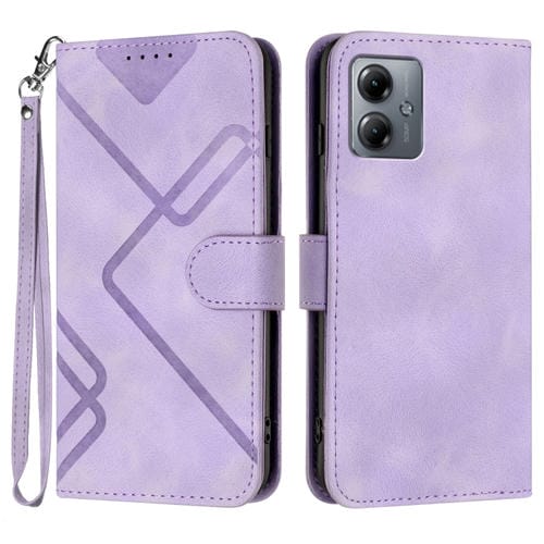 Funda de Cuero para Motorola Moto G14 con Patrón Lineal Skin Feel (Púrpura Claro)