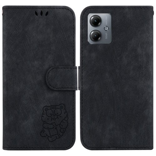 - 1x Funda de Cuero para Motorola Moto G14 Little Tiger en Relieve (Negro)