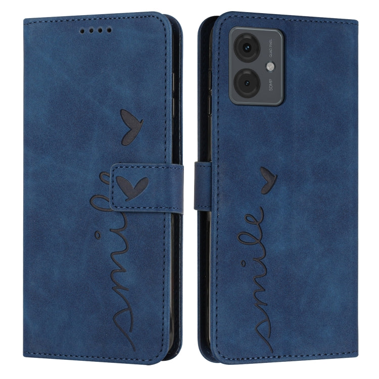 Funda de Cuero para Motorola Moto G14 Skin Feel Heart Pattern (Azul)