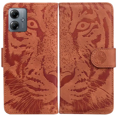 - 1x Funda de Cuero para Motorola Moto G14 con Patrón Tiger Embossed (Marrón)