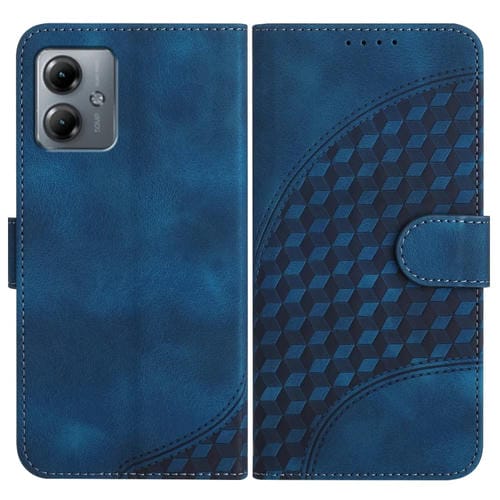Funda de Cuero para Motorola Moto G14 Yx0060 con Relieve y Cabeza de Elefante con Cordón (Azul Real)