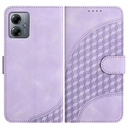 - 1x Funda de Cuero para Motorola Moto G14 Yx0060 con Relieve y Cabeza de Elefante con Cordón (Púrpura Claro)