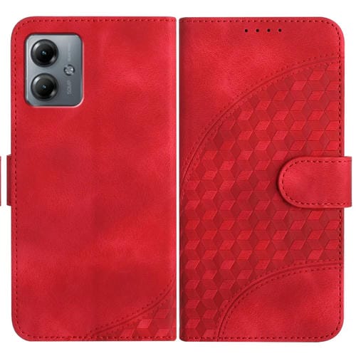 Funda de Cuero para Motorola Moto G14 Yx0060 con Relieve y Cabeza de Elefante con Cordón (Rojo)
