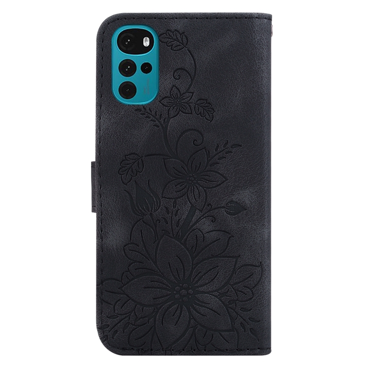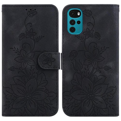 - 1x Funda para Teléfono Motorola Moto G22 Lily de Cuero en Relieve (Negro)