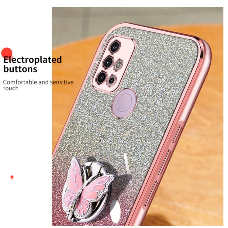 Funda TPU para Motorola Moto G30 con Soporte Mariposa y Brillo Degradado (Azul Sierra)