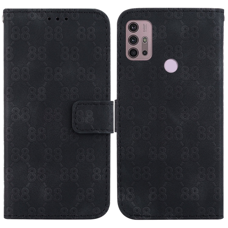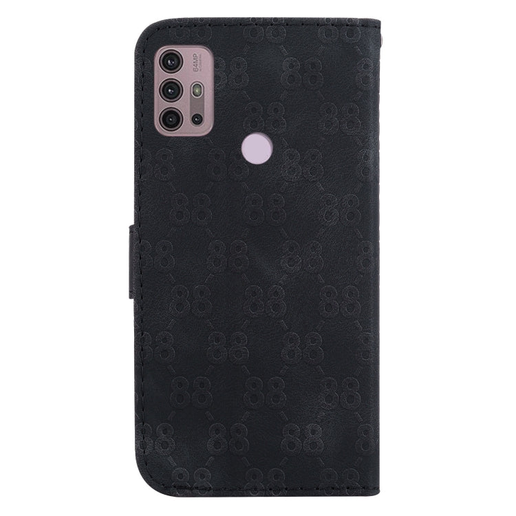 For Motorola Moto G30 / G10 / G20 / G10 Power Double 8 Shaped Embossed Leather Phone Case (Black)