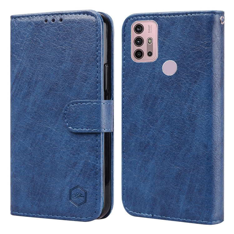 Funda para Motorola Moto G30 G10 G20 textura de cuero aceitoso PU + TPU (Azul Oscuro)