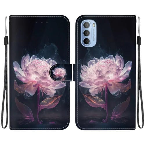Funda de Cuero para Motorola Moto G31 / G41 con Dibujo Coloreado y Textura de Cristal (Peonía Púrpura)