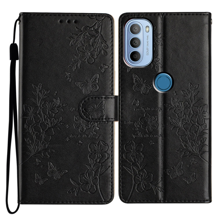 Funda de Cuero para Motorola Moto G31 y G41 con Mariposas y Flores (Negro)