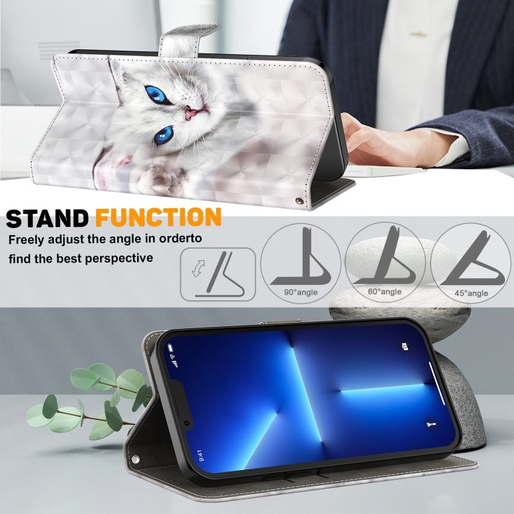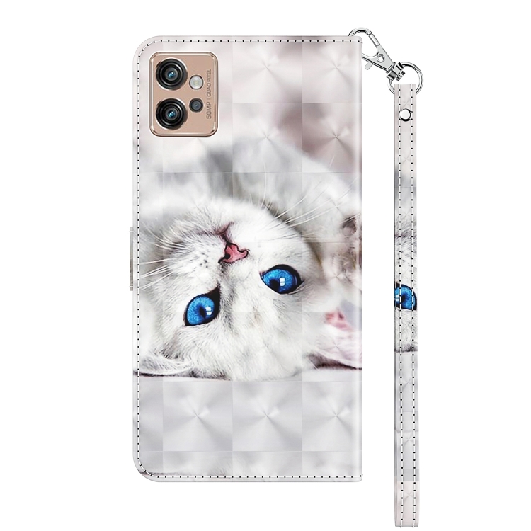Funda para Motorola Moto G32 5G 3D Cuero Pintado Gato Blanco Reflejo