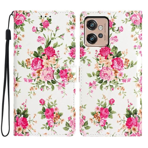 Funda de Cuero para Motorola Moto G32 con Dibujo Coloreado Peonías