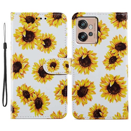 Funda de Cuero para Motorola Moto G32 con Tapa Horizontal y Patrón Pintado (Girasol)