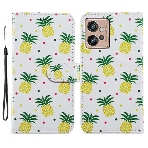 Funda de Cuero para Motorola Moto G32 con Tapa Horizontal y Patrón Pintado (Piña)