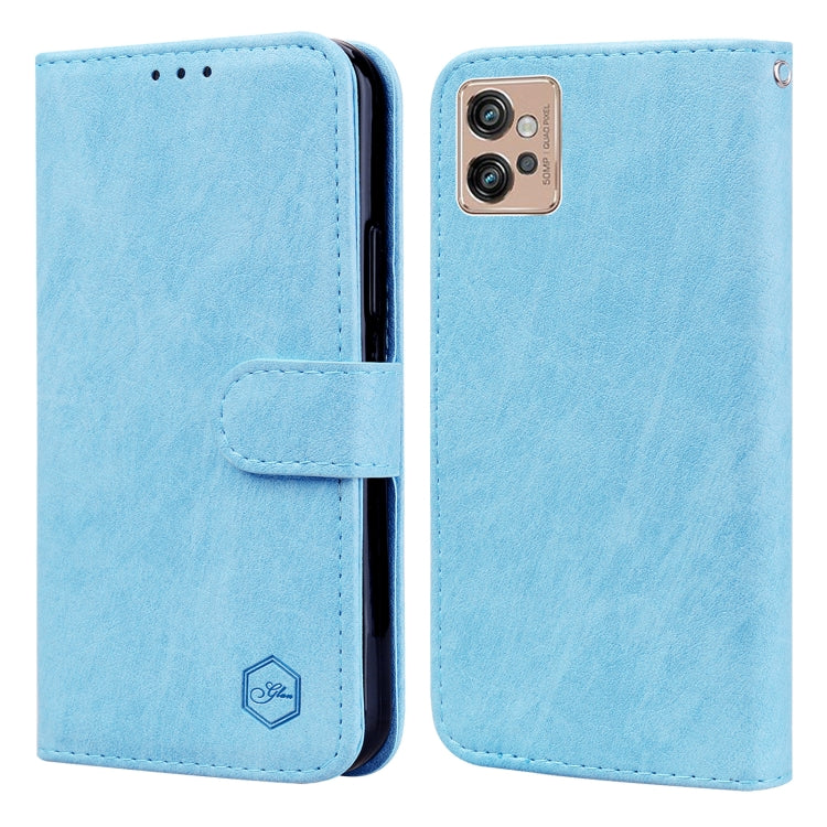 Funda para Motorola Moto G32 con Sensación de Piel Aceite Textura de Cuero PU y TPU (Azul Claro)