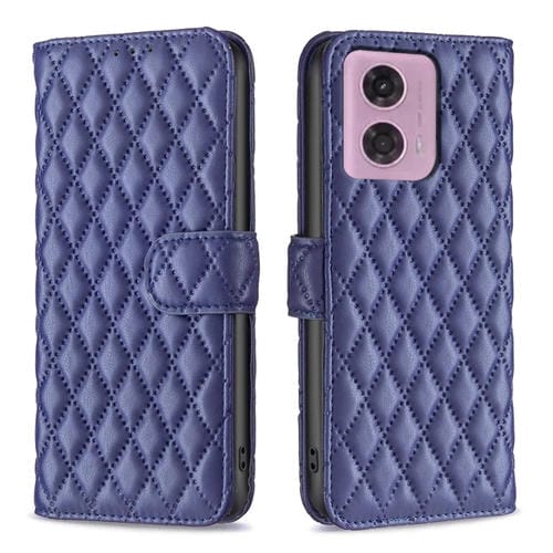 Funda de Cuero con Tapa para Motorola Moto G34 5G Diamond Lattice (Azul)