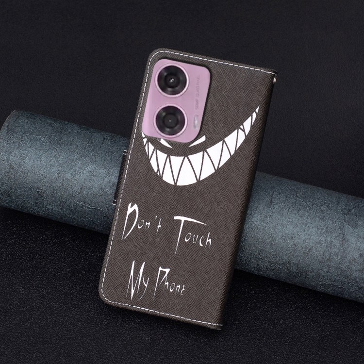 Funda de Cuero para Motorola Moto G34 5G con Patrón de Dibujo Coloreado (Sonrisa)