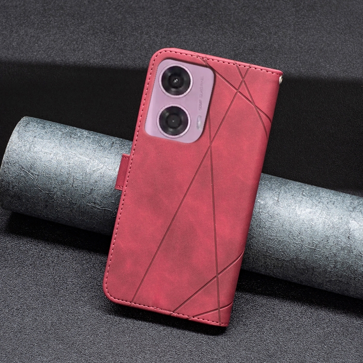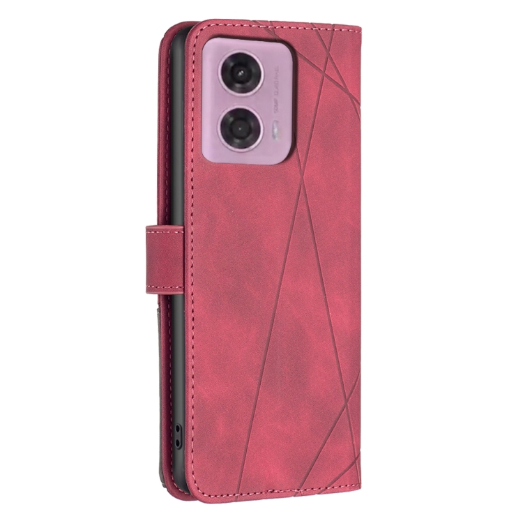 Funda para Motorola Moto G34 5G de Cuero con Textura de Rombo y Hebilla Magnética (Rojo)