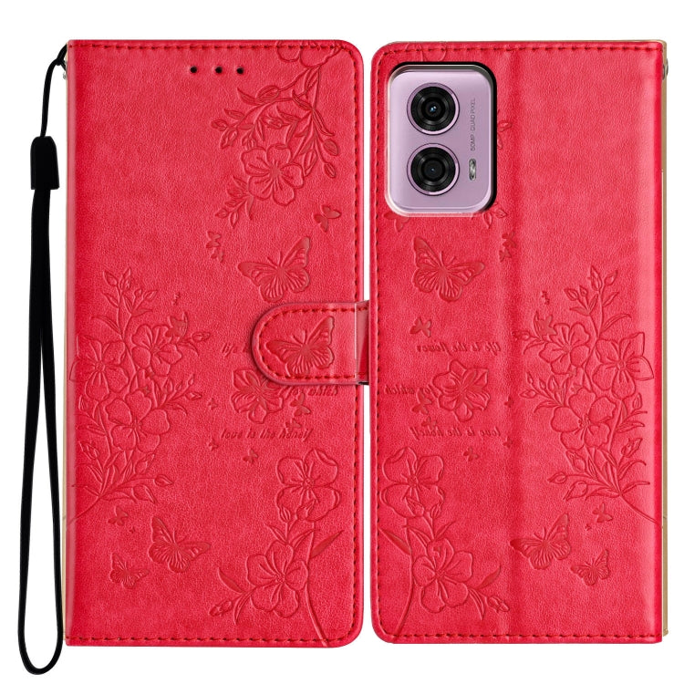 Funda de Cuero para Motorola Moto G34 con Mariposas y Flores (Rojo)