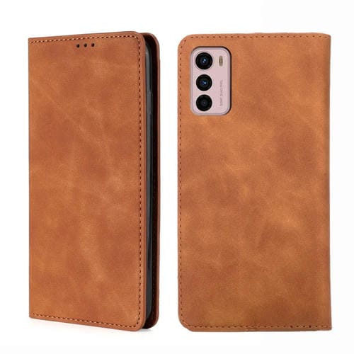 Funda para Motorola Moto G42 4G Skin Feel Flip Horizontal Magnética de Cuero (Marrón Claro)
