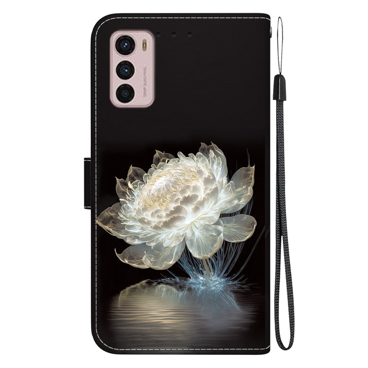Estuche de Cuero para Motorola Moto G42 con Dibujo Coloreado y Textura de Cristal (Peonía de Cristal)
