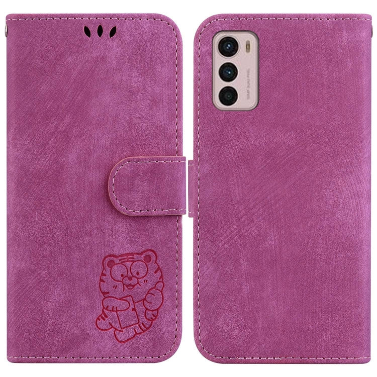 Funda de Cuero para Motorola Moto G42 con Relieve Little Tiger (Rojo Rosa)
