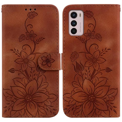 Funda de Cuero en Relieve para Motorola Moto G42 Lily (Marrón)