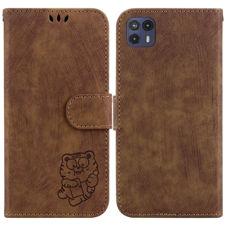 Funda para Motorola Moto G50 5G de Cuero con Relieve Little Tiger (Marrón)