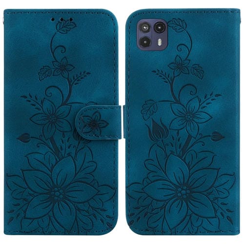 - 1x Funda de Cuero en Relieve para Motorola Moto G50 5G Lily (Azul Oscuro)