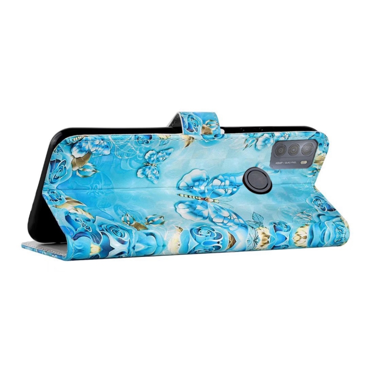 Funda de Cuero para Motorola Moto G50 con Dibujo 3D en Relieve al Óleo (Mariposas Azules)