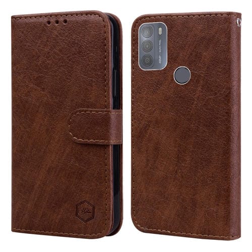 For Motorola Moto G50 Skin Feel Oily Leather Texture PU+TPU Phone Case(Brown)