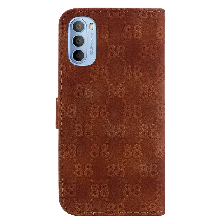 Estuche para Motorola Moto G51 de Cuero en Relieve con Doble Forma de 8 (Marrón)