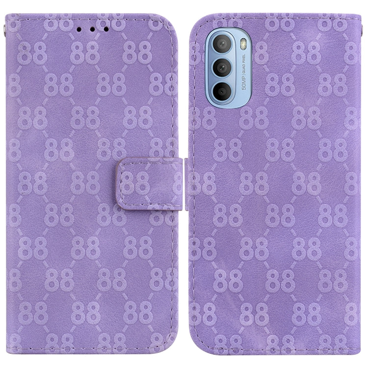 - 1x Estuche para Motorola Moto G51 de Cuero en Relieve con Doble Forma de 8 (Púrpura)