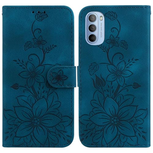 - 1x Funda de Cuero con Relieve Lily para Motorola Moto G51 (Azul Oscuro)