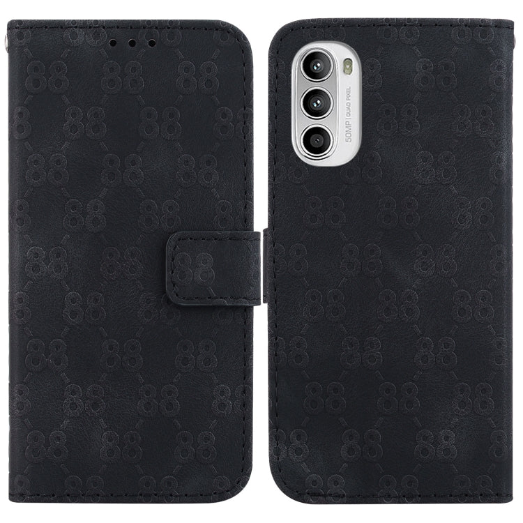 Estuche para Motorola Moto G52 de Cuero En Relieve con Doble Forma de 8 (Negro)